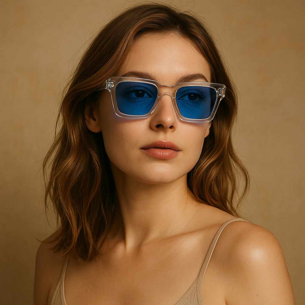 De slående blå linserna ger en trendig twist och förvandlar vilken outfit som helst till ett statement. Perfekta för både vardag och stilfulla tillfällen.
